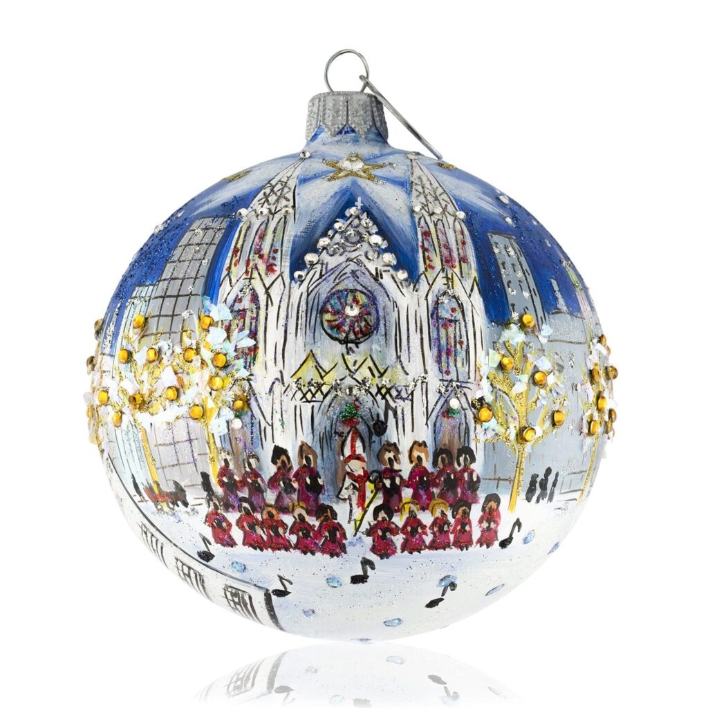 This is a Michael Storrings Platinum Limited Edition Ornament. It is handpainted and handblown glass, imported from Poland, and approximately 4? in diameter. Spot clean. Please allow one week for shipment.